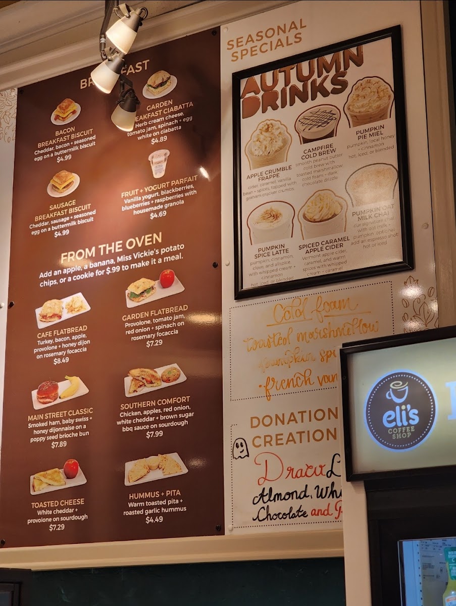 The atmosphere at Eli's is equally inviting. With a cozy interior decorated by a whimsical "Starry Night" wall, it offers numerous nooks for you to settle in with a book or chat with friends. The reviews acclaim not just the aesthetic charm but also the warmhearted staff, always ready to ensure you feel right at home. Customers like River enjoy the variety, mentioning drinks like the intriguing white chocolate iced espresso with salted caramel cold foam, a testament to Eli's innovative drink options.